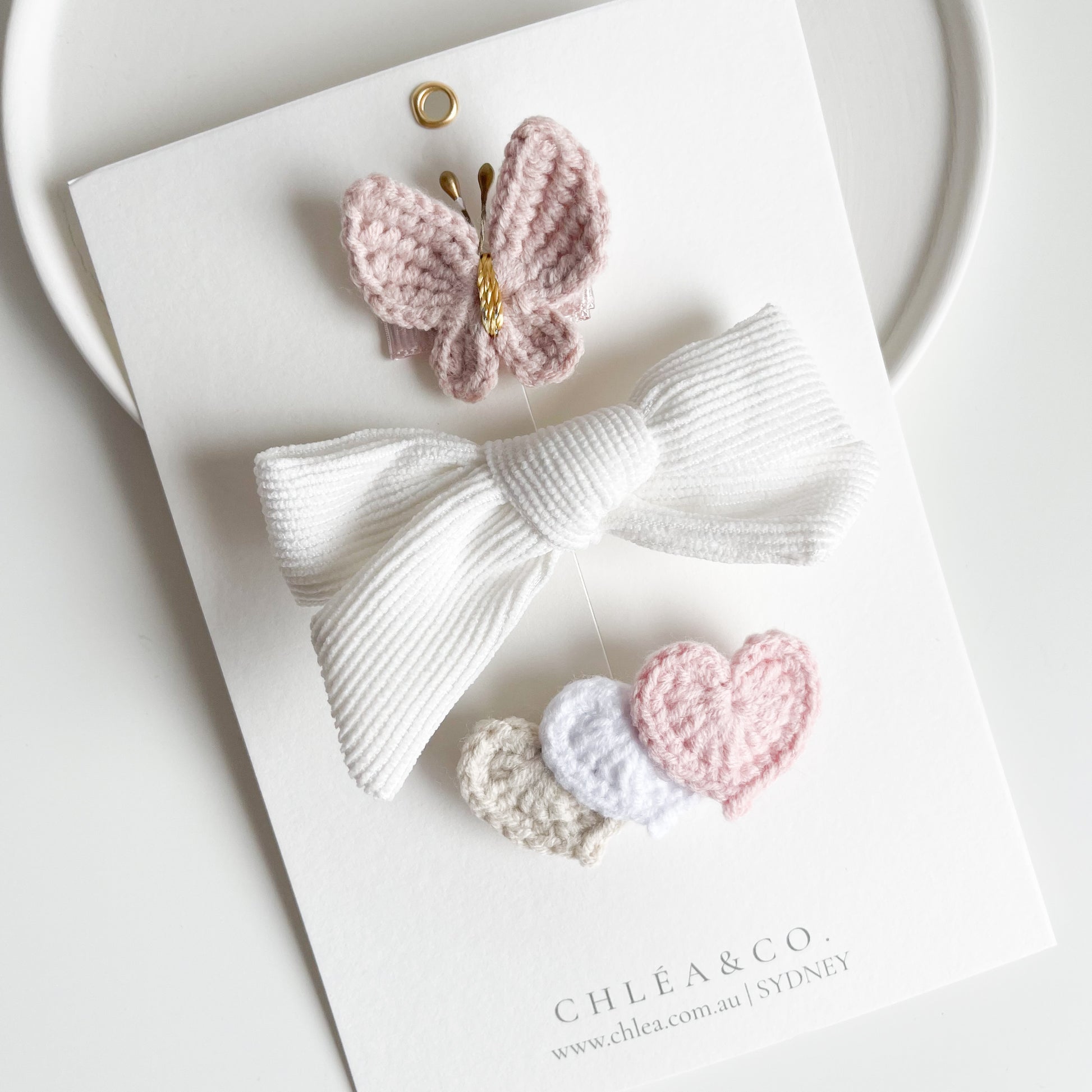 Bow & Crochet Clip Set