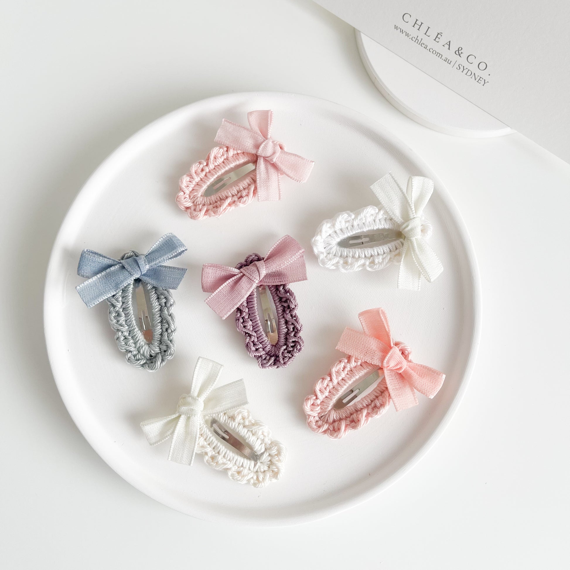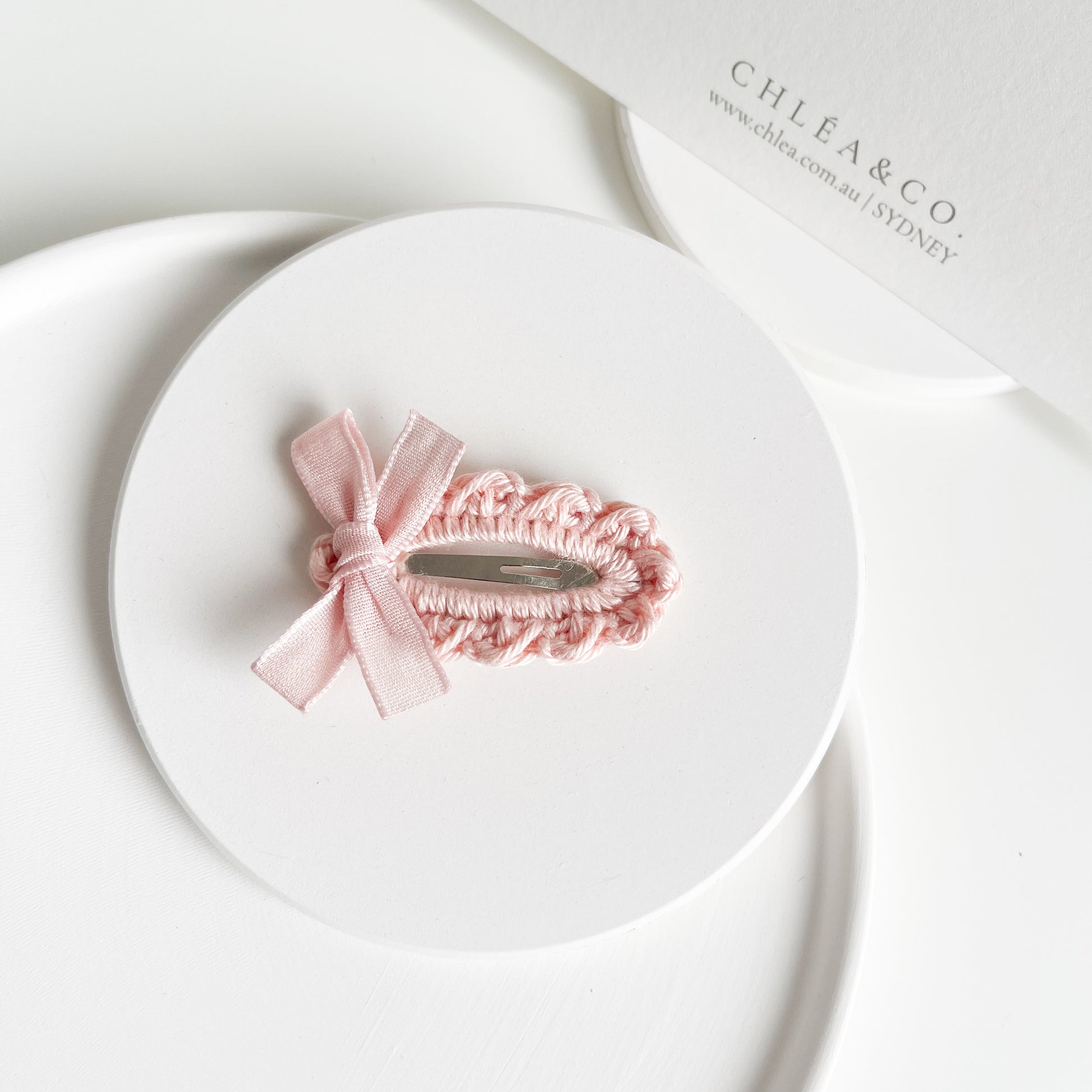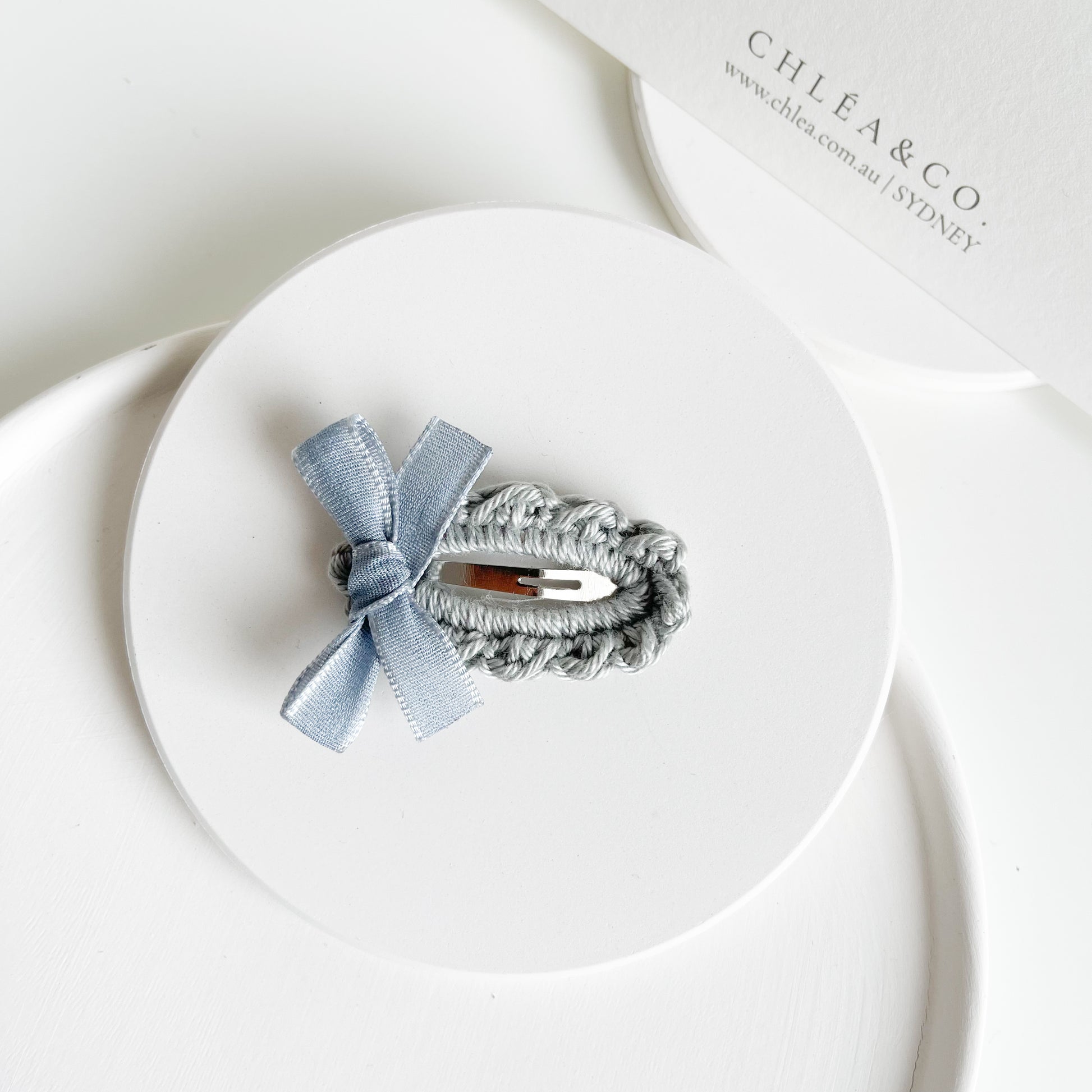 The Sunday Hair Clip is made of premium soft yarn featuring a petite, hand-tied ribbon.